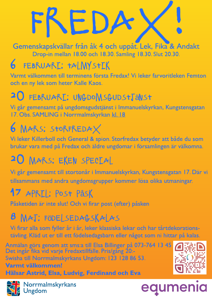 19 jan Fredax! Posted at 09:42h in Aktuellt, Förstasidan, Norrmalmskyrkans Ungdom by Stefan Print page