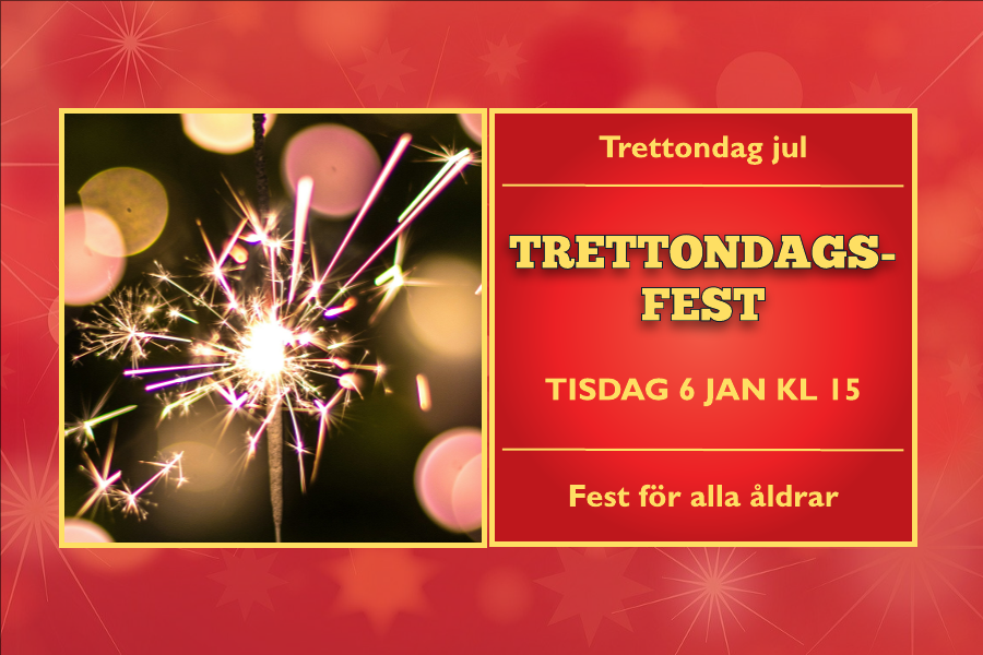 07 okt Trettondagsfest Posted at 12:00h in Aktuellt, Barn & familj, Förstasidan by Stefan Tisdag 6 januari kl 15 Trettondag jul Trettondagsfest för alla åldrar Julorkester, dans kring granen, quiz, julgröt och julspel. Print page
